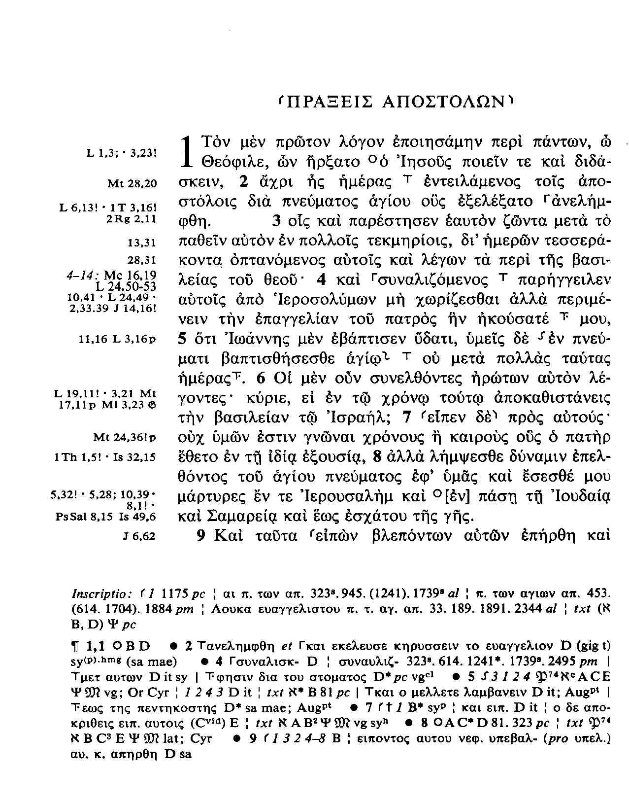 Ich zeigte eine Seite aus dem Nt Graece und erklärte: Oben rechts seht ihr den eigentlichen Bibeltext. Oben links ein paar Parallelstellen, die jetzt erst mal nicht weiter interessieren. Und was ist das kryptische Zeug da unten? Alle Handschriften, vom Papyrusschnipsel bis zum ganzen NT wurden präzise verglichen. Jede, auch noch so kleine, Abweichung ist in diesem sogenannten kritischen Apparat verzeichnet. Für die Handschriften stehen jeweils Kürzel. Fachkundige können hier sehen, welche Schriften den oben abgedruckten Text beinhalten und welche Varianten existieren.